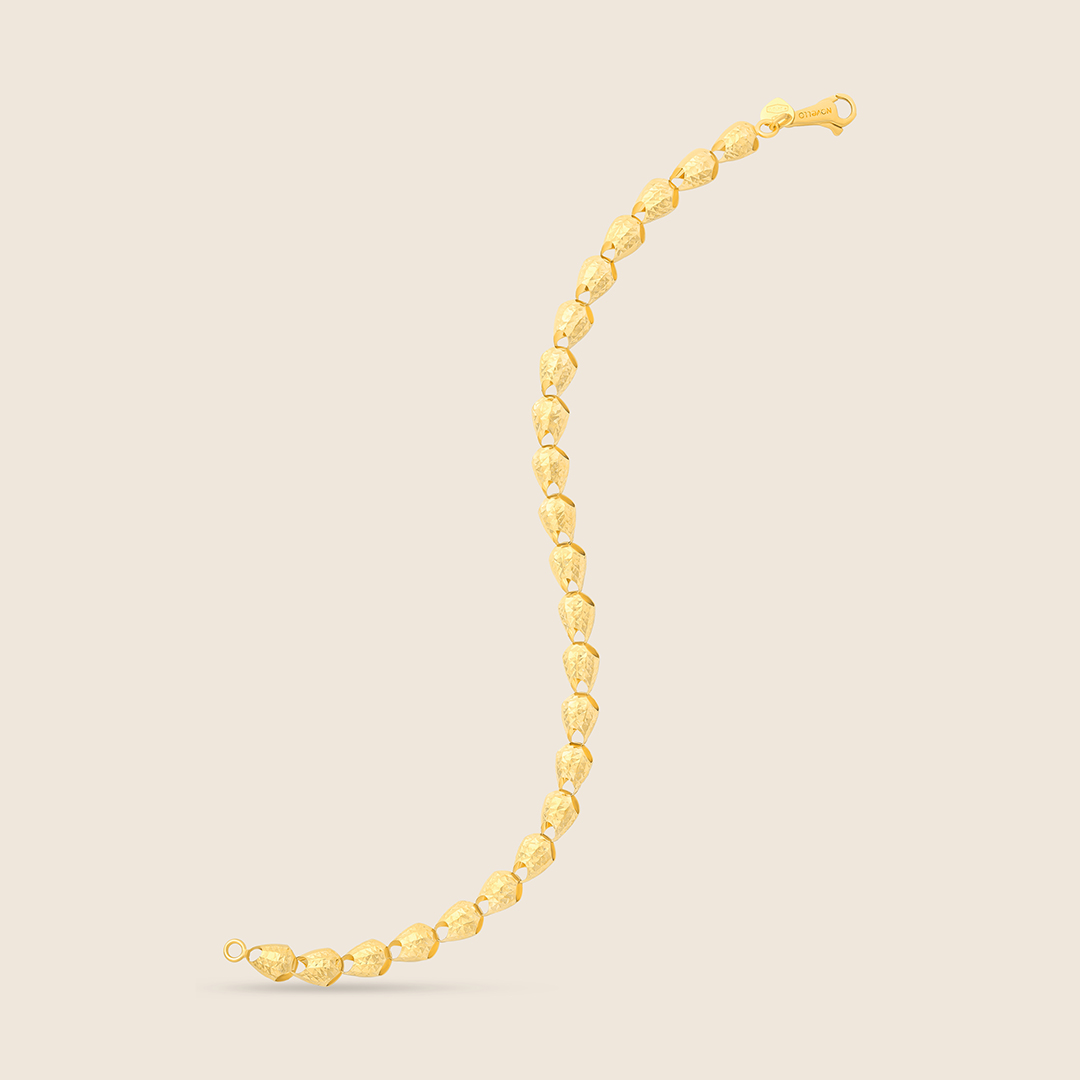 The bracelet, formed of hollow yellow gold links, is light in structure yet commanding in presence, with each open link expressing balance, strength, and enduring elegance.