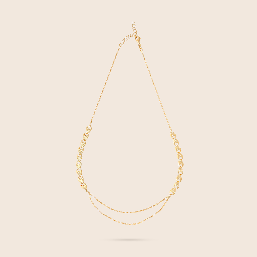 Crafted in yellow gold, the necklace is framed by wide links on each side, its double-layered front radiating elegance, strength, and the seamless harmony of connected beauty.