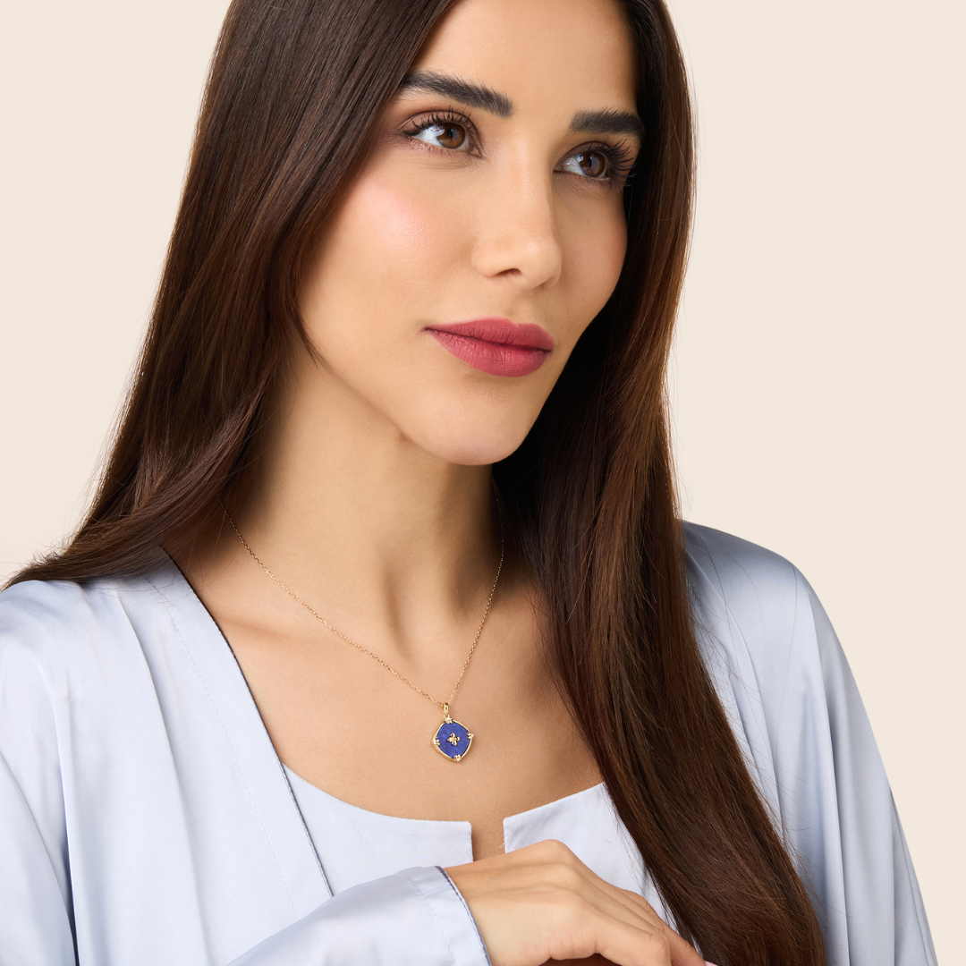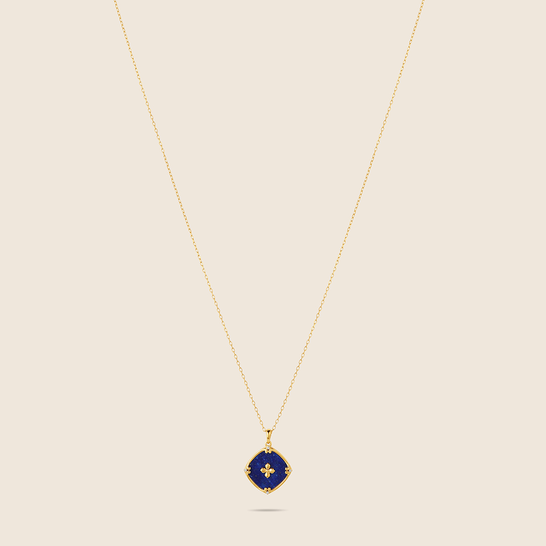 Amara yellow gold diamond cushion shape pendant with Lapis Lazuli