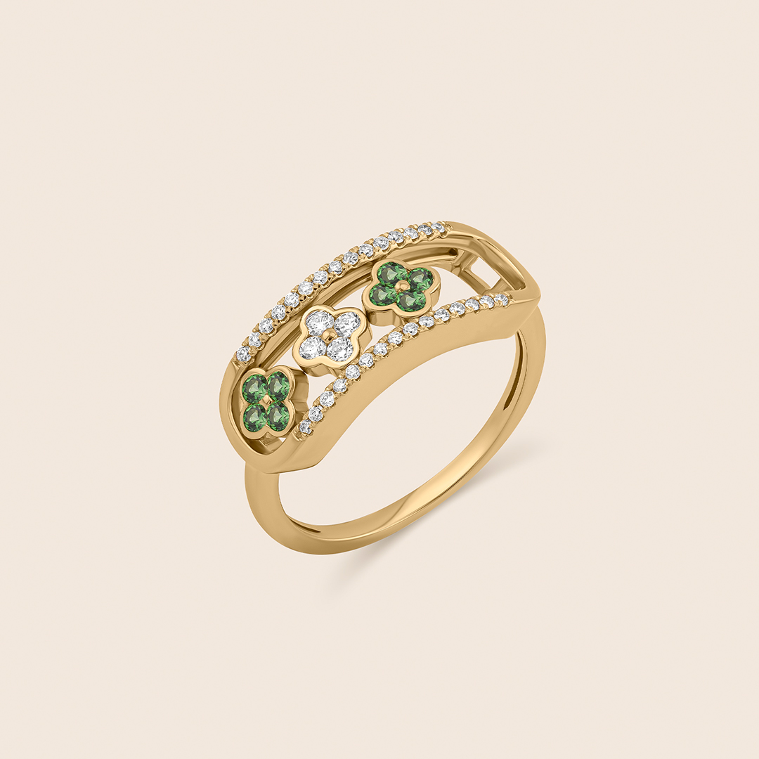 amara yellow gold diamond ring flower emerald