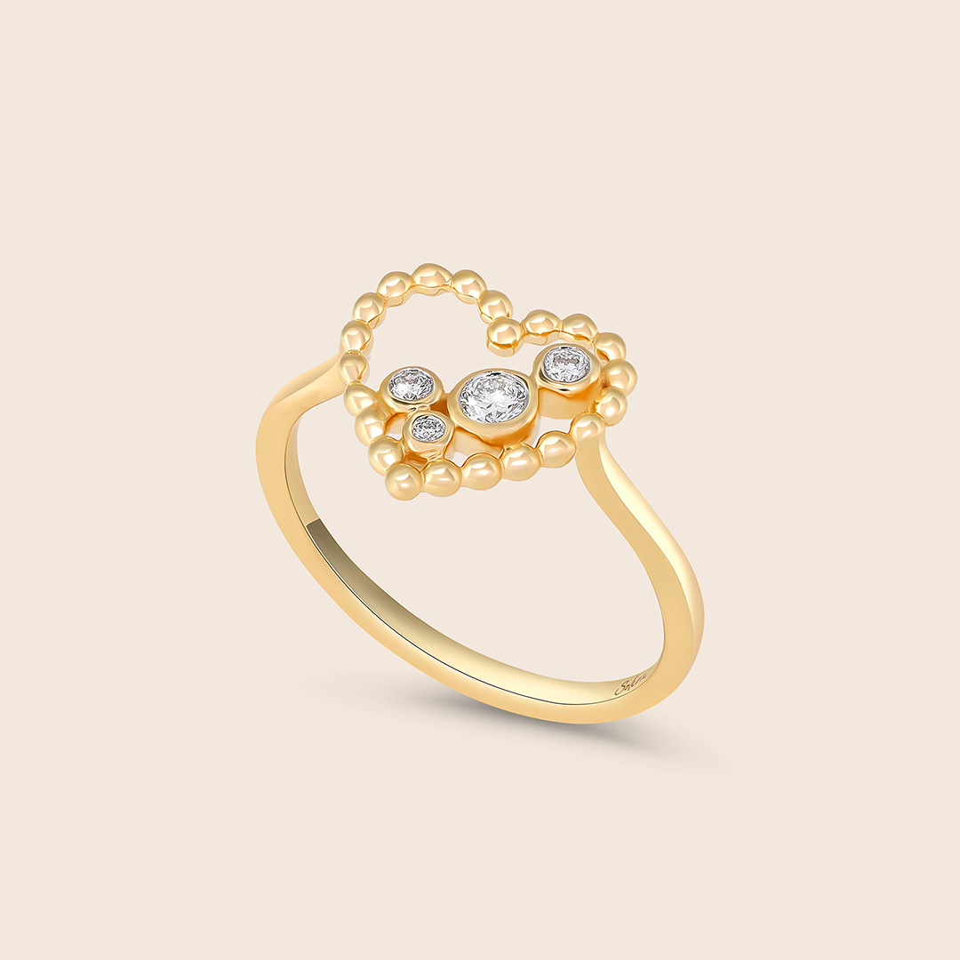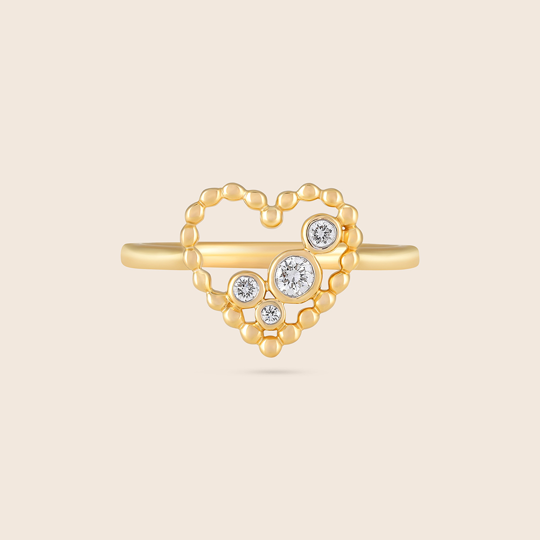 Bubbleiss yellow gold diamond heart ring