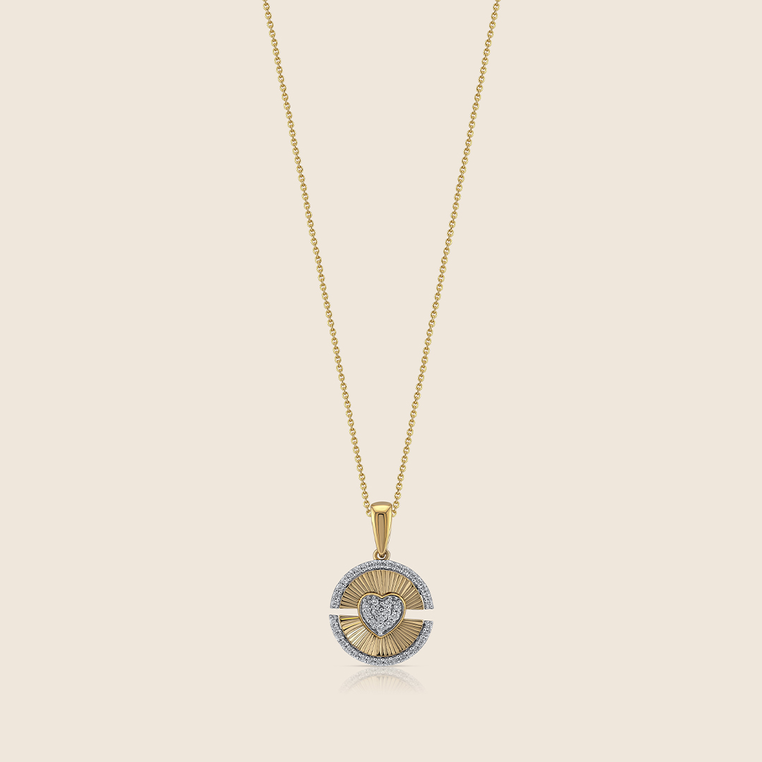 Two rose gold arcs meet, cradling a heart alight with diamonds. Together they whisper of love?s delicate balance, sparkling with memories, unspoken promises, and the quiet magic that turns every shared moment into forever.