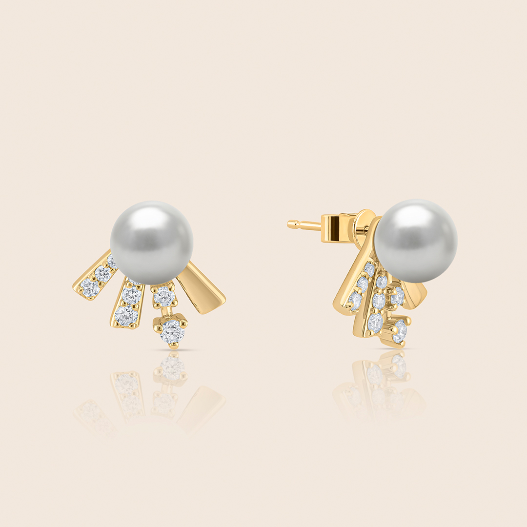 lavita rose gold bow earring with diamonds and a center pearl