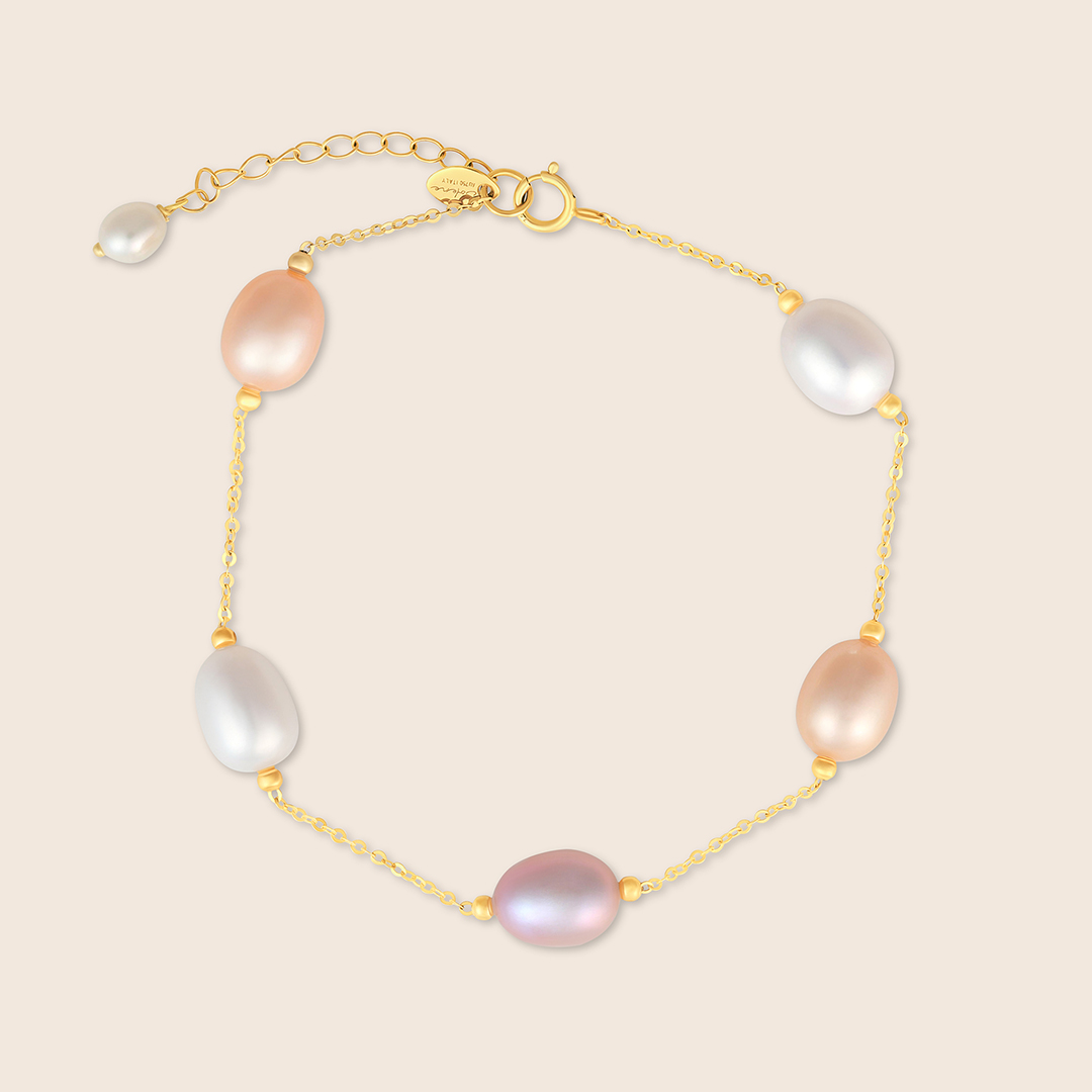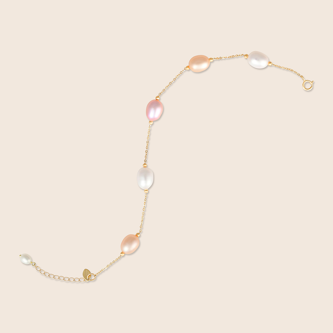 Varied hued pearls are set on the yellow gold bracelet, forming an elegant celebration of color and grace, where nature?? beauty is reflected in every radiant detail