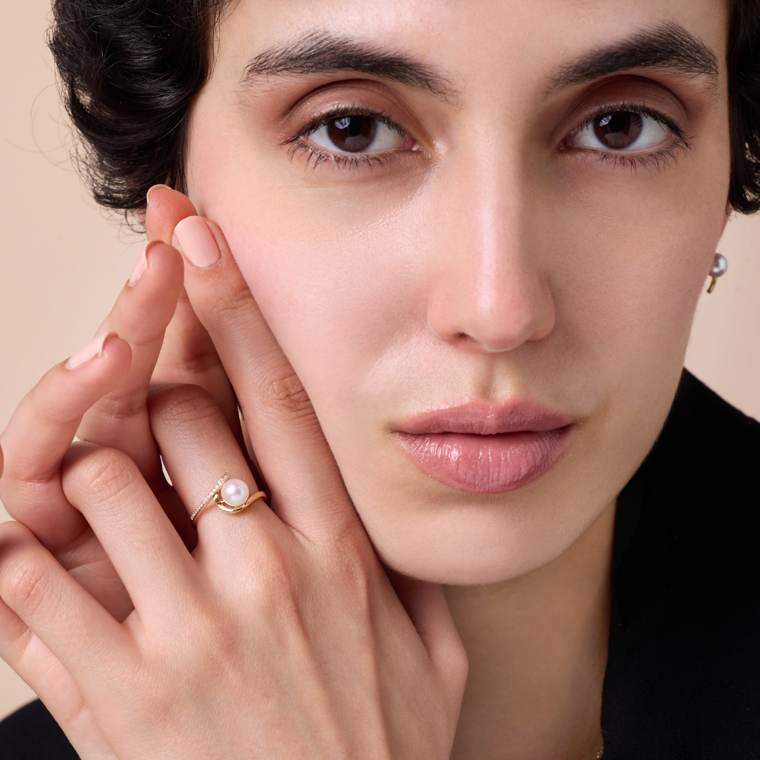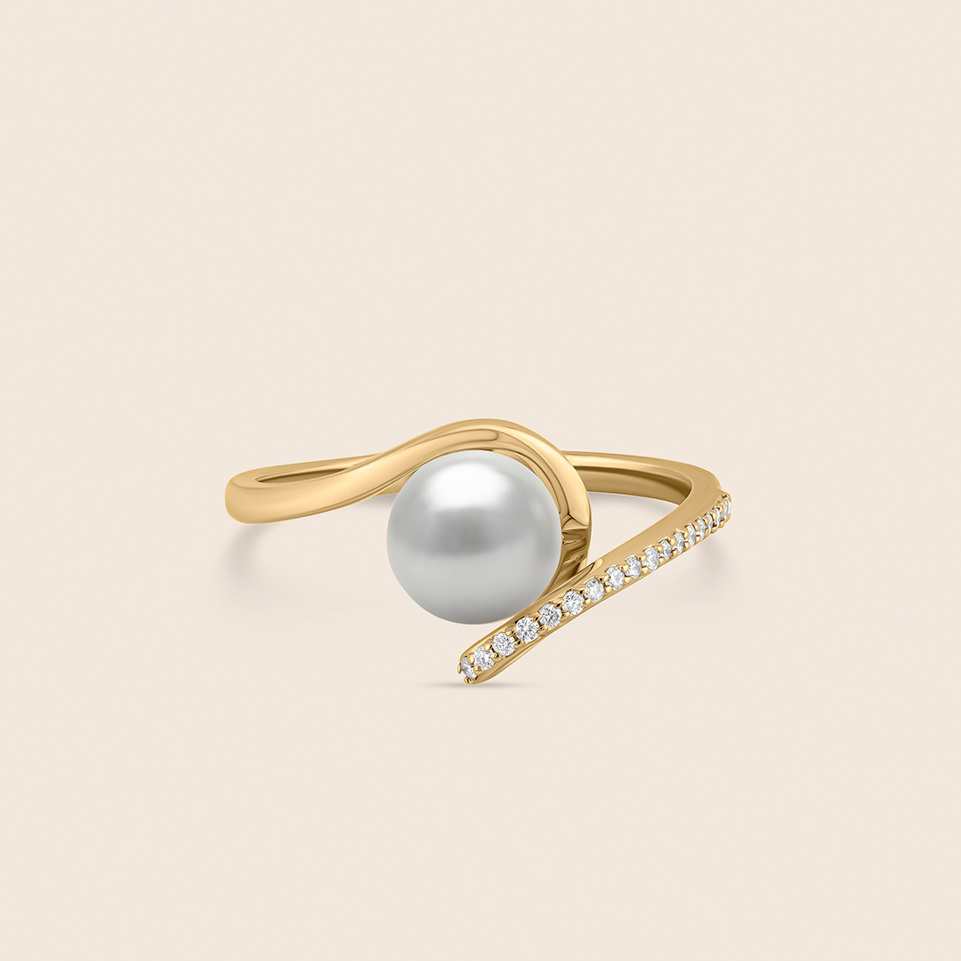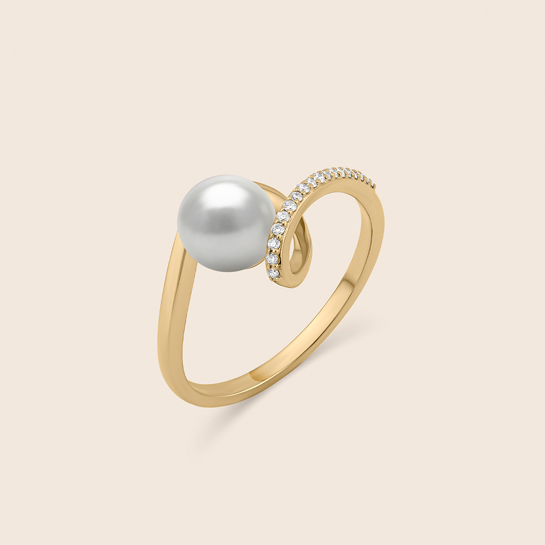 Encircling a luminous pearl at its heart, a swirl of yellow gold is dusted with diamonds, where the eternal flow of elegance and nature?? pure harmony is reflected