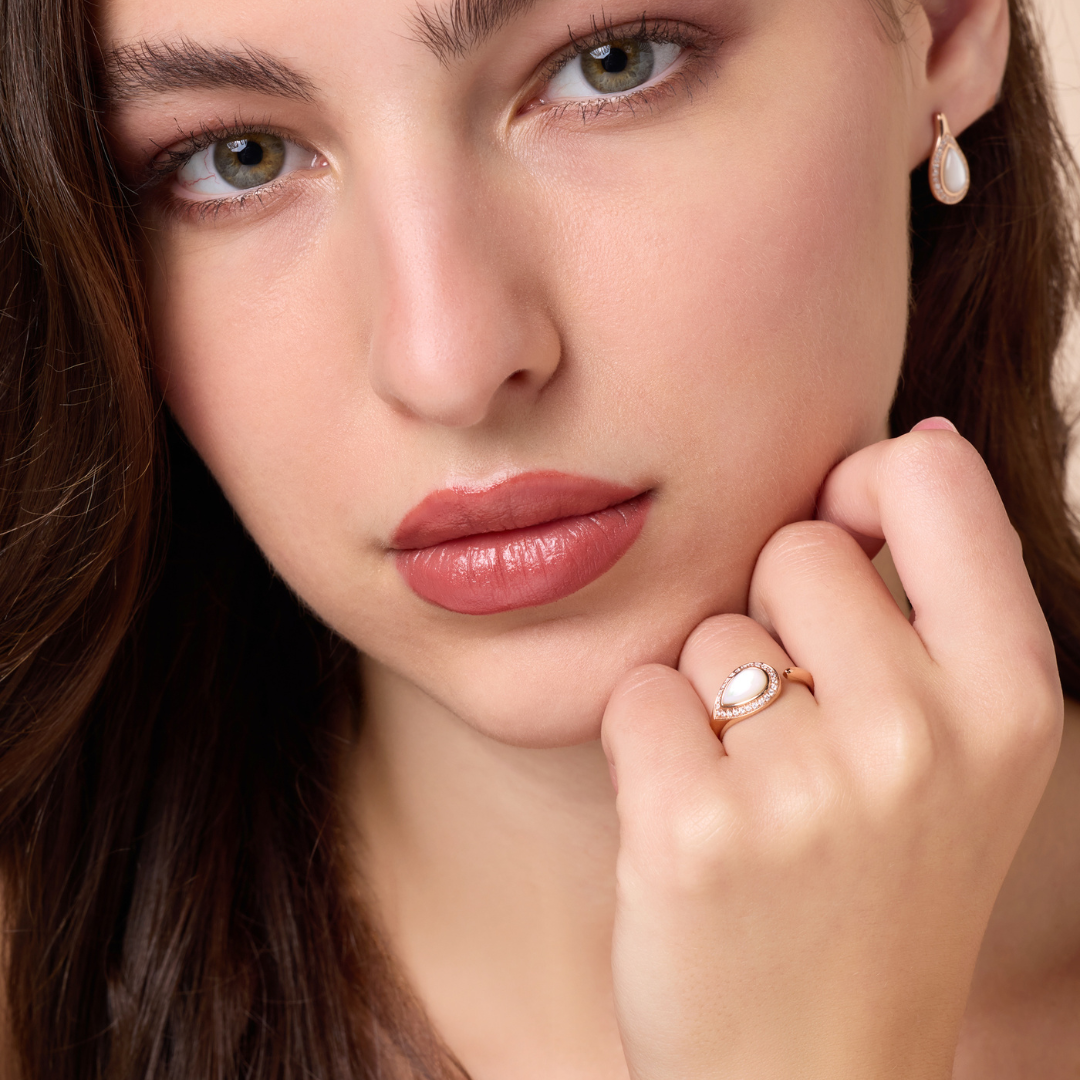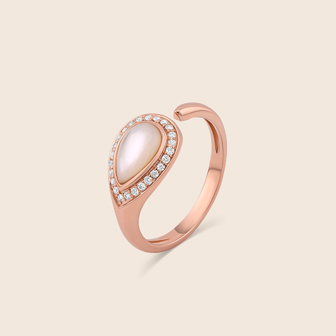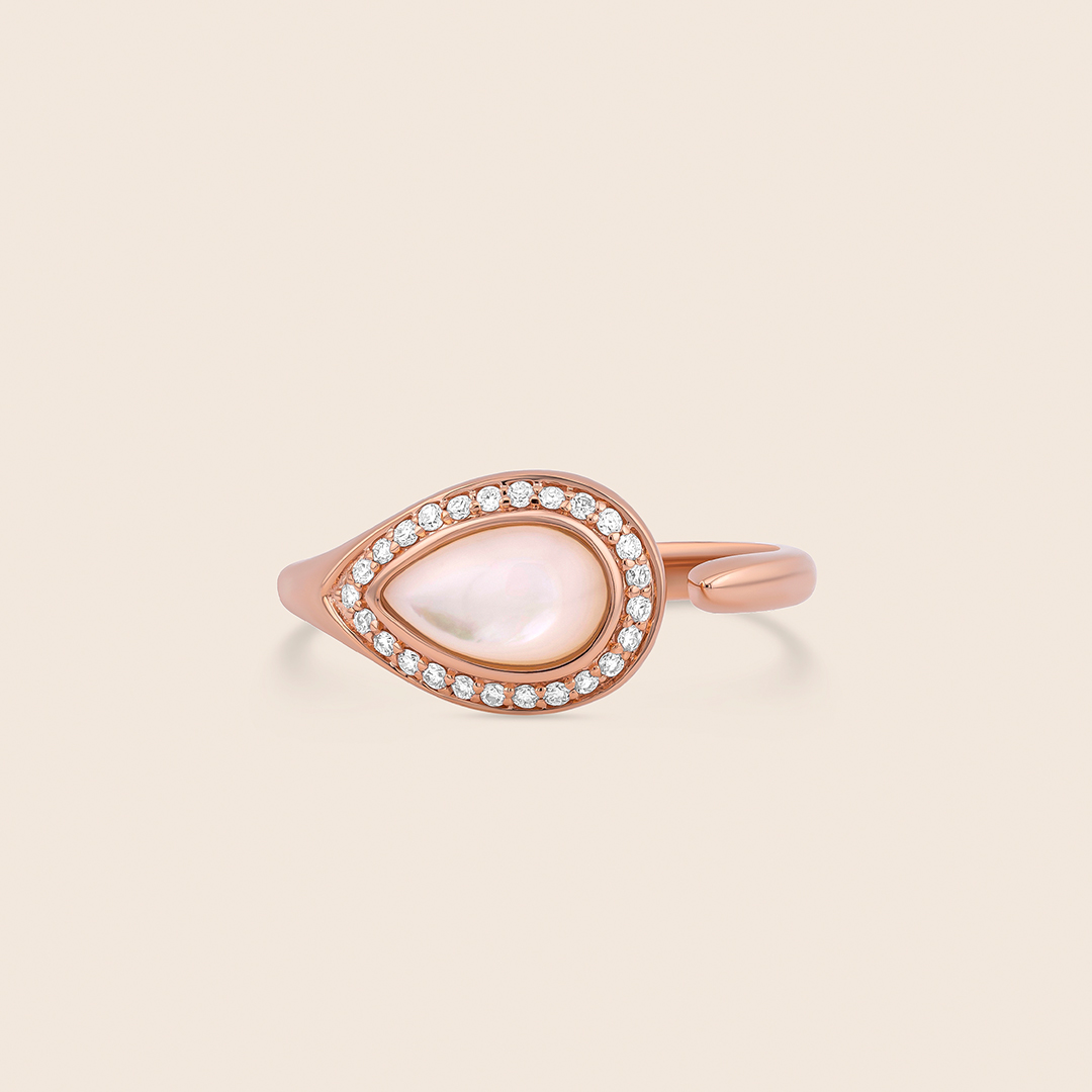 nephele rose gold diamond ring with mother of pearl drops