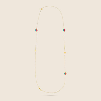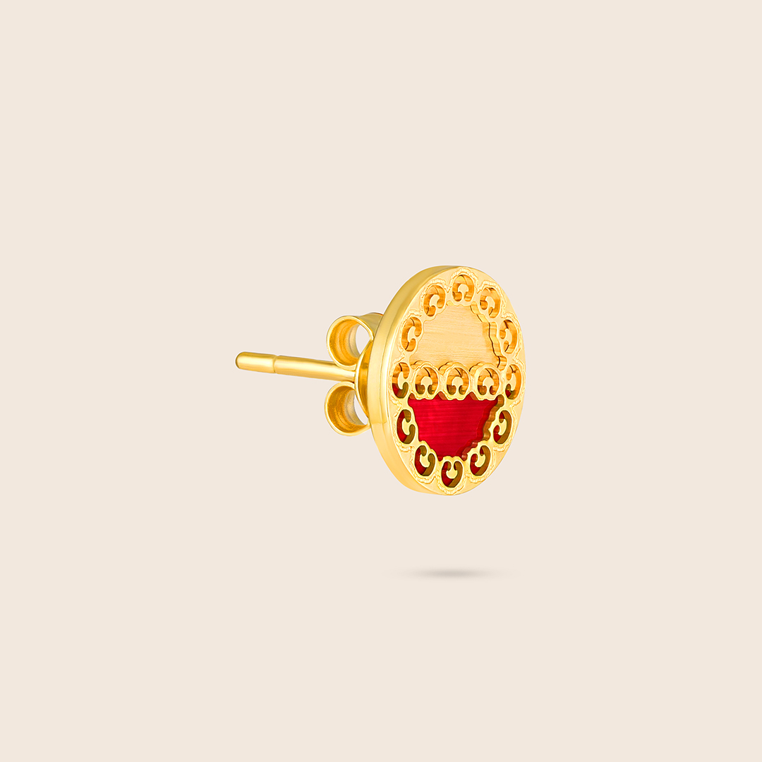 Embraced by a band of yellow gold, vivid dangling ruby and luminous enamel are set with delicate detailing, where elegance meets artistry and strength